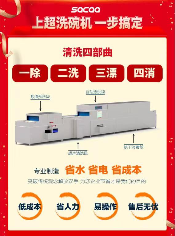 這設(shè)備全自動化,按幾個按鈕就能完成自動除渣、超聲波精洗、噴淋凈水漂洗、風(fēng)刀切水、遠(yuǎn)紅外節(jié)能均熱烘干,全程智能化。人工只需要放餐具,收餐具,大量餐具一站式輕松清洗。
